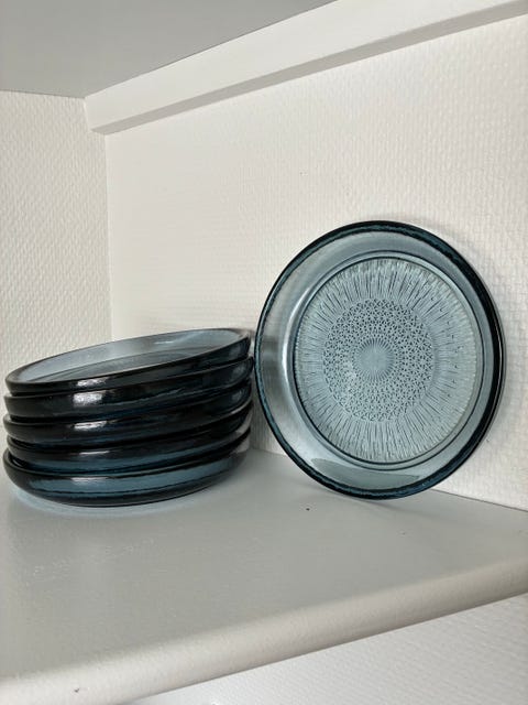 6 stk glas tallerkener i blå