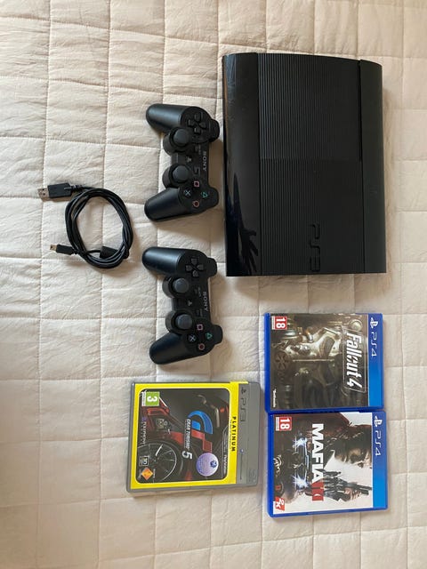 Sony Playstation PS3,controller, kabel, brugt & 4 stk NYT originalt PS3 tilbehør