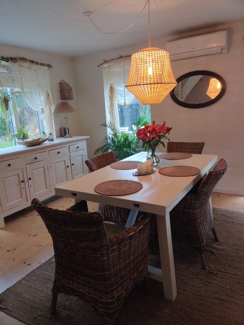Spisebord med stole og skænk