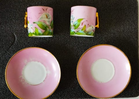 Bing og Grøndahl, 1854-1894, 2 antikke kaffesæt (2 kaffekopper og 2 underkopper)