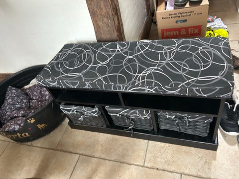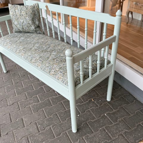 Bænk med kasser og pude