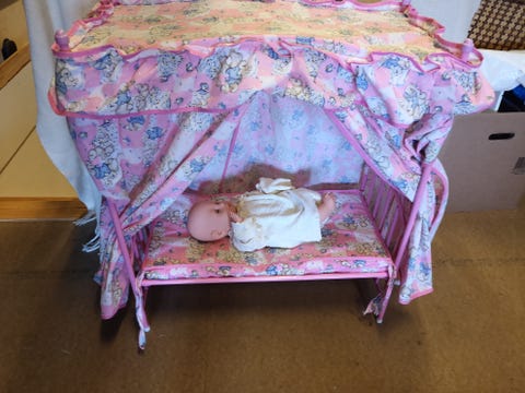 Vintage dukke seng / Krybbe på hjul
