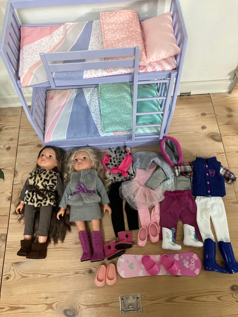 Seng + dukker med tøj