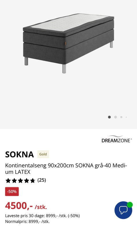 seng med topmadras grå