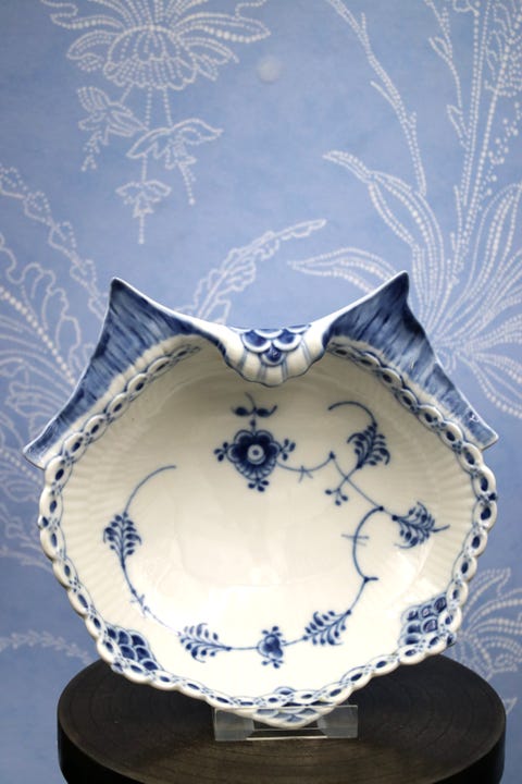 Royal Copenhagen / Kgl. porcelæn. Musselmalet halvblonde halvmåneformet fad
