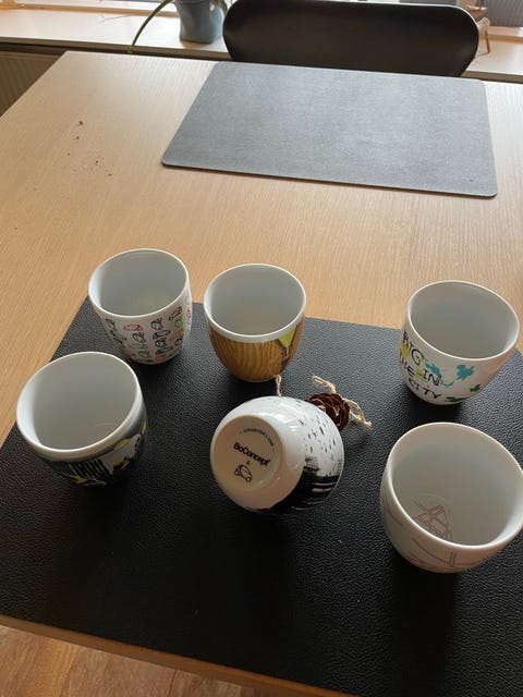 Royal Copenhagen hvidriflet krus, 7 stk fra Royal Copenhagen (str. 7 stk ø 8 cm)