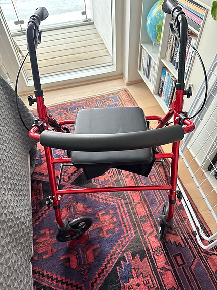 Rollator med sæde og kurv