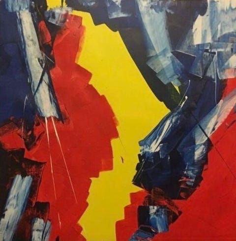 Abstrakt maleri lærred sort hvid grå