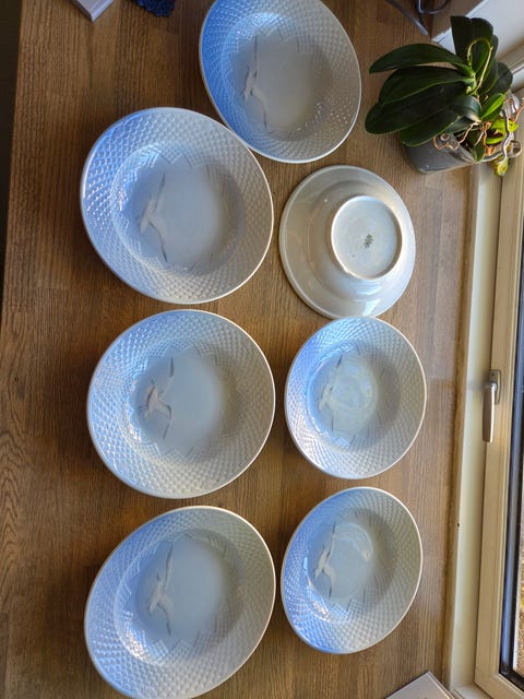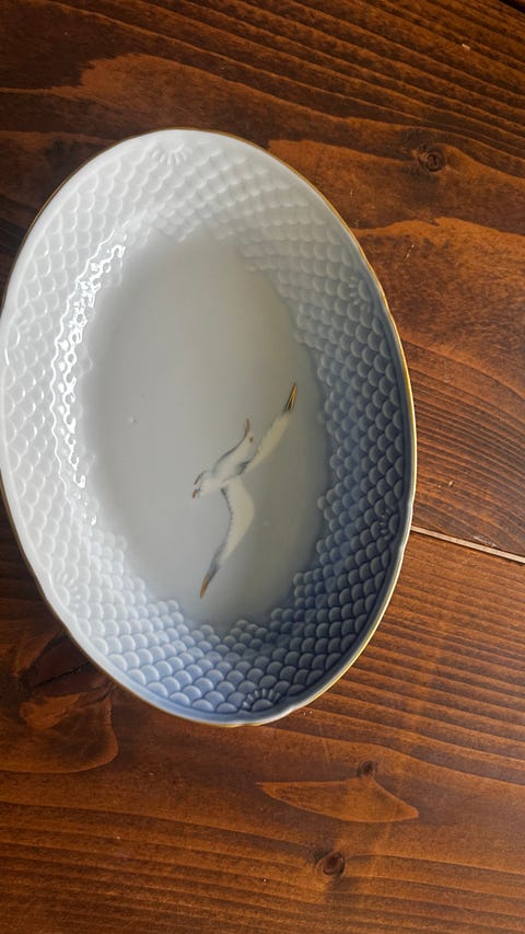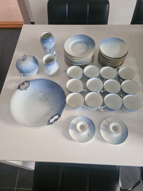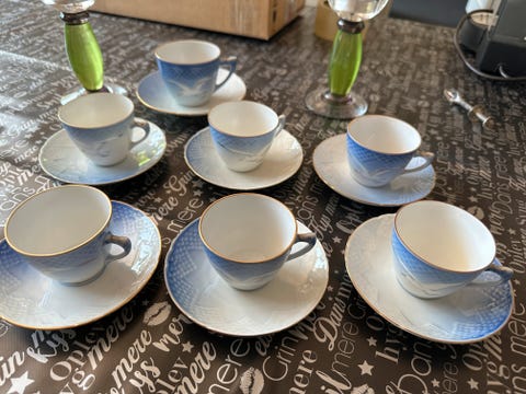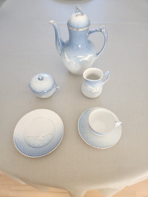 Porcelæn, Kaffe/the kop med underkop og kagetallerk , Bing og Grøndahl mågestel