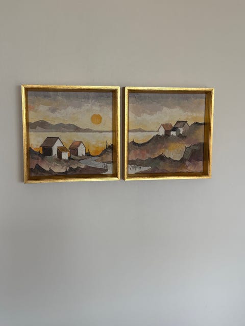 3 små malerier i guldrammer