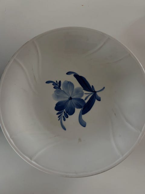 Bonbonniere med blomst og sommerfugl fra Royal Copenhagen (str. Ø. 13,5 cm)