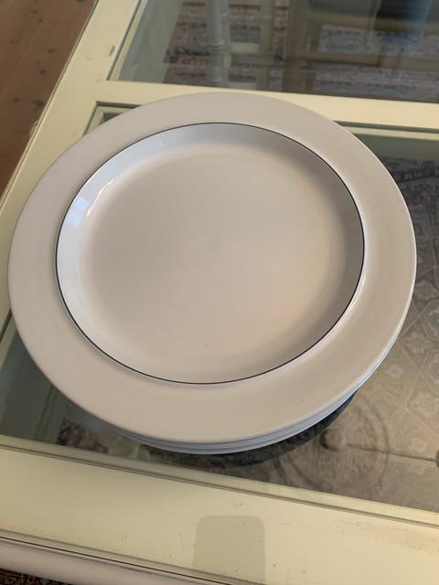 Sæt med seks porcelænstallerkener, musselmalede, fra Royal Copenhagen (str. Ø...
