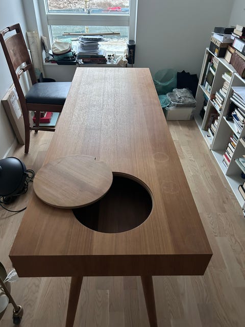 Skrivebord i teak og eg