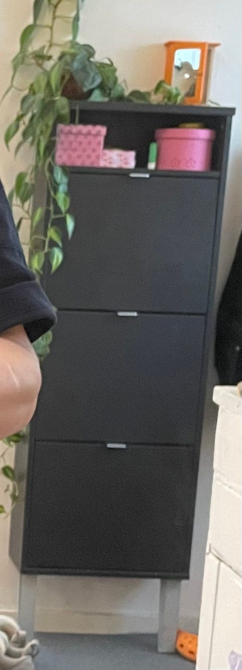 Sort skoskab med pyntehylder