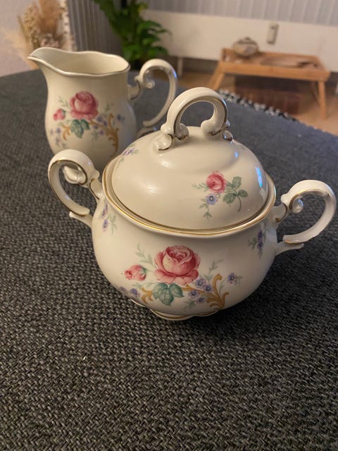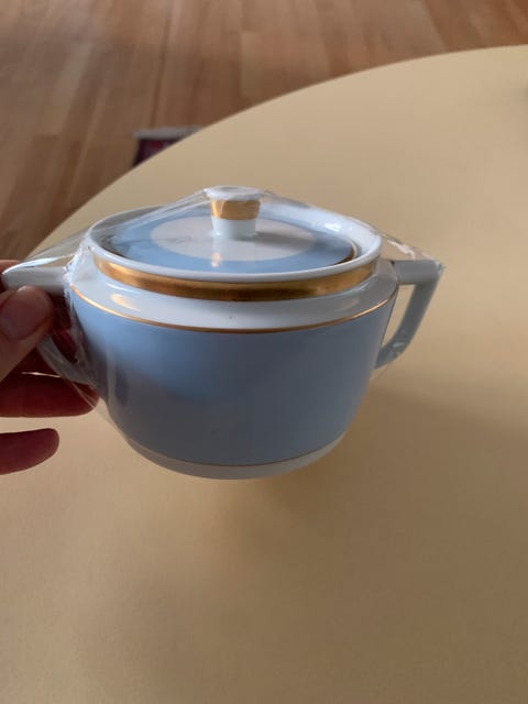Blåkant 12 sæt kaffe-/tekopper m/desserttallerken, fløde og sukkerskål m/låg