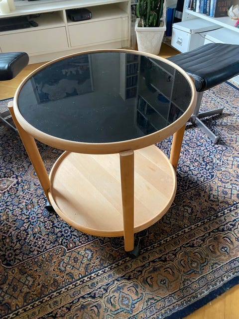 Sofabord i træ med store gummihjul