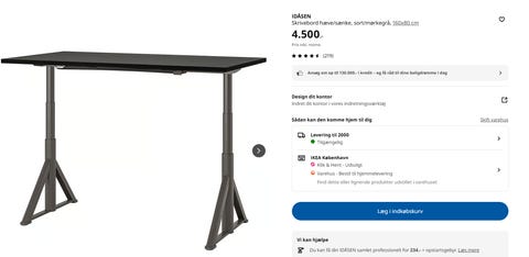 Find et brugt skrivebord til en lavere pris. På DBA er der 3.525 annonce(r), der sælger skriveborde. ## Et lille skrivebord kan gøre stor glæde Et skrivebord, der er unødvendigt for en anden, kan være det helt rigtige til dine behov. Især et skrivebord i massivt træ eller et elektrisk skrivebord kan være et dyrt køb, og du kan finde et velegnet produkt væsentligt billigere brugt. Et godt skrivebord har en velegnet højde for brugeren eller kan justeres. Når du gennemser annonce(r)ne, bør du tjekke bordets dimensioner og sammenligne dem med den bedste arbejdshøjde for dig.
