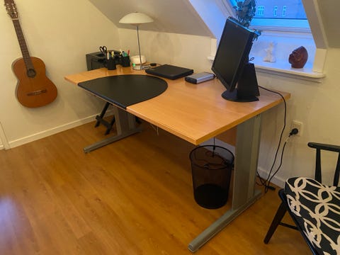 Find et brugt skrivebord til en lavere pris. På DBA er der 3.473 annonce(r), der sælger skriveborde. ## Et lille skrivebord kan gøre stor glæde Et skrivebord, der er unødvendigt for en anden, kan være det helt rigtige til dine behov. Især et skrivebord i massivt træ eller et elektrisk skrivebord kan være et dyrt køb, og du kan finde et velegnet produkt væsentligt billigere brugt. Et godt skrivebord har en velegnet højde for brugeren eller kan justeres. Når du gennemser annonce(r)ne, bør du tjekke bordets dimensioner og sammenligne dem med den bedste arbejdshøjde for dig.