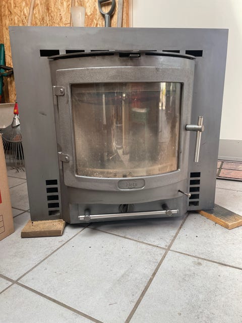 Brændeovn, indsat.
