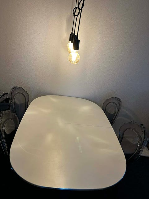Hvidt ovalt spisebord