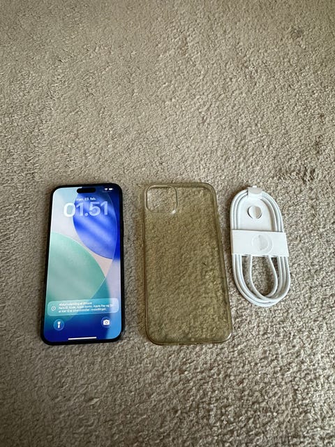 iPhone 15 Pro Max 256 GB – Sort Titanium – Apple FineWoven cover – USB-C – 91 %🔋