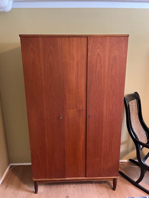 Teaktræksskab m/hylder og bøjlestang