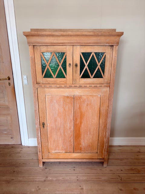 Antik vitrineskab afsyret fyrretræ