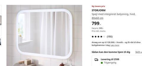 Spejl med lys fra Ikea