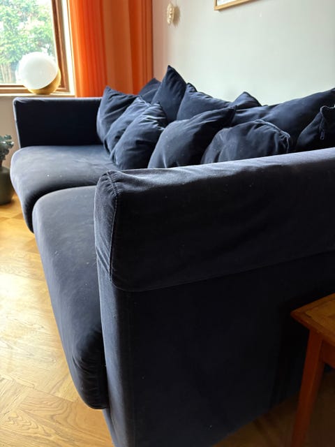 Mørkeblå sofa i velour