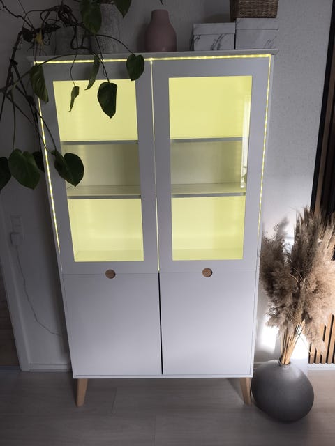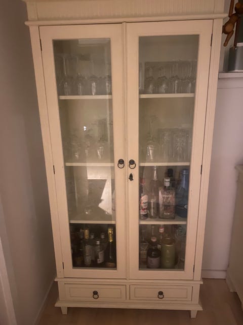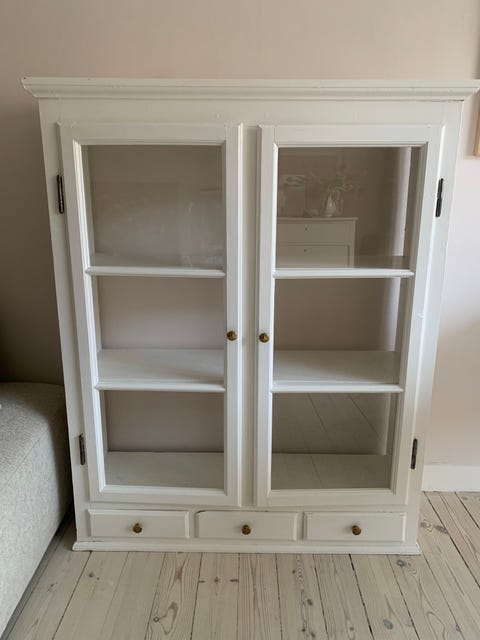 Smukt hvidmalet vitrineskab