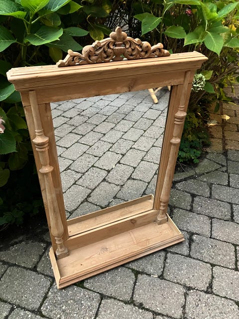 Spejl med hylde i fyrretræ