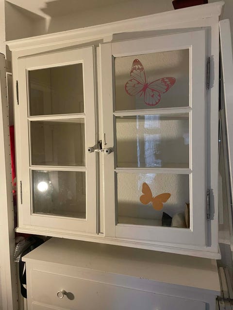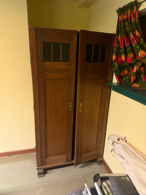 Gammelt skab med glas låger