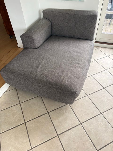 Mørke grå sofa på metal ben.