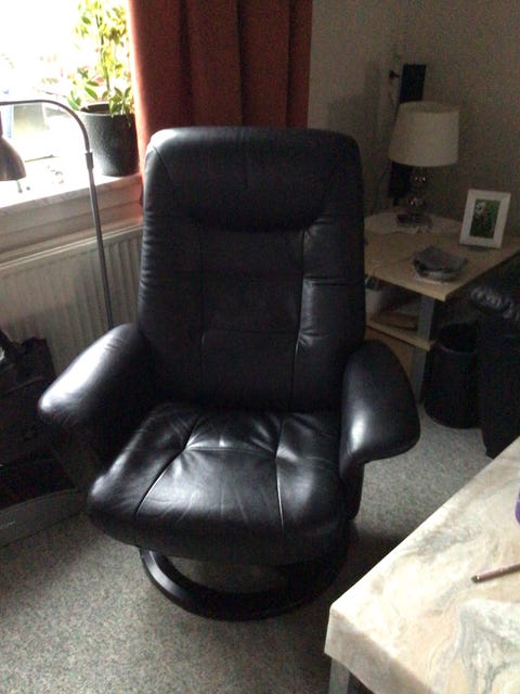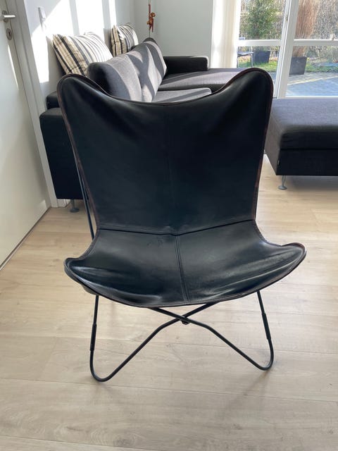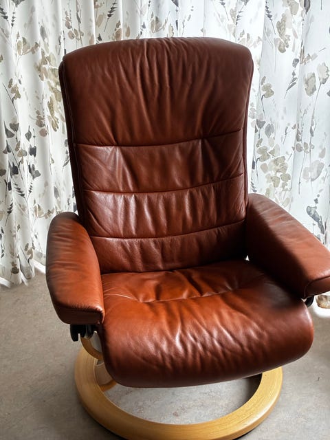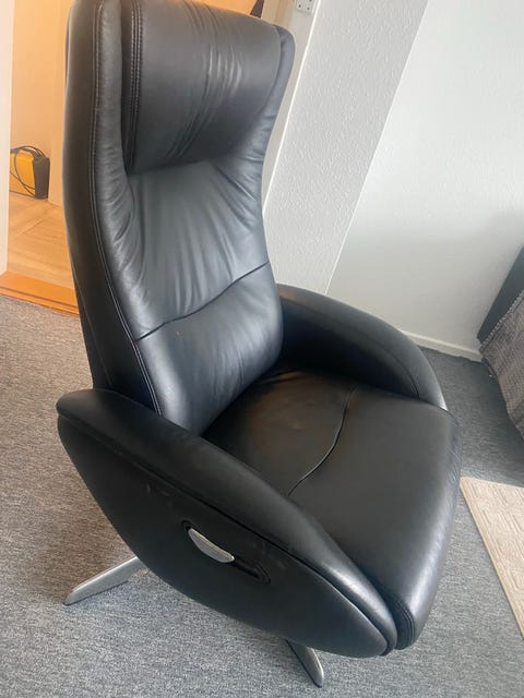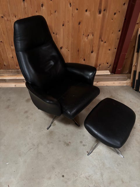 Læderlænestol + puf