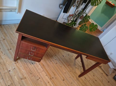 Find et brugt skrivebord til en lavere pris. På DBA er der 3.516 annonce(r), der sælger skriveborde. ## Et lille skrivebord kan gøre stor glæde Et skrivebord, der er unødvendigt for en anden, kan være det helt rigtige til dine behov. Især et skrivebord i massivt træ eller et elektrisk skrivebord kan være et dyrt køb, og du kan finde et velegnet produkt væsentligt billigere brugt. Et godt skrivebord har en velegnet højde for brugeren eller kan justeres. Når du gennemser annonce(r)ne, bør du tjekke bordets dimensioner og sammenligne dem med den bedste arbejdshøjde for dig.