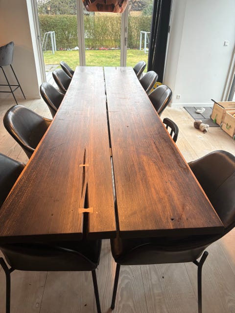 Planke bord i røget eg
