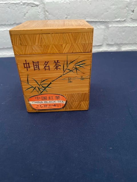 Gammel te kasse i træ