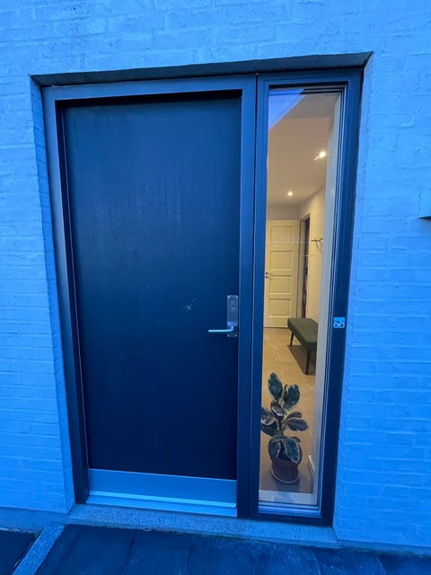 Hvid hoveddør med postkasse