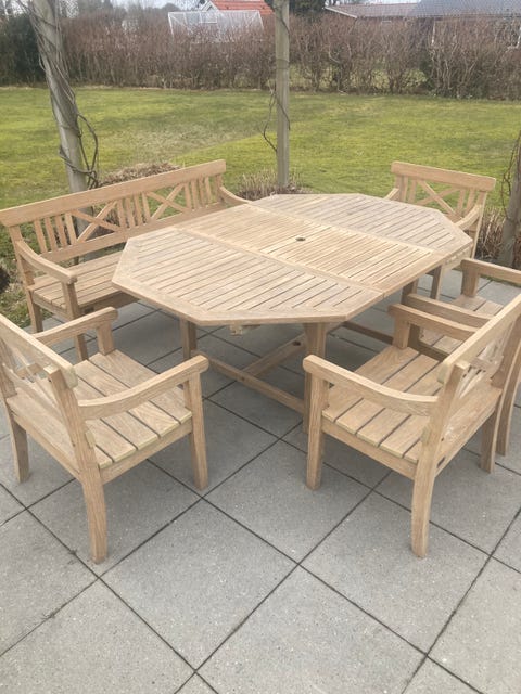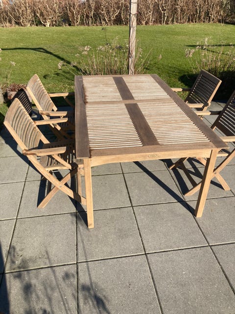 Havebord og 6 stole i teak