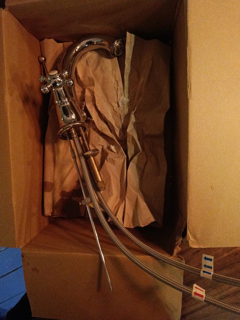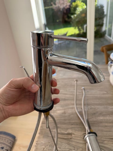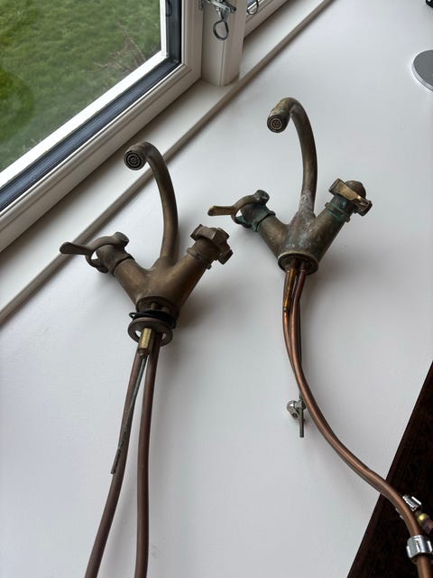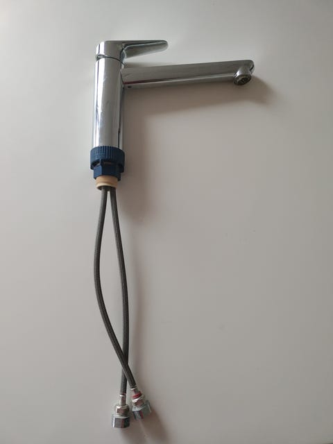 Du kan sagtens finde en brugt vandhane, du synes er flot. Ved at skifte vandhanen kan du pifte den gamle vask op og give hele badeværelset et nyt look.