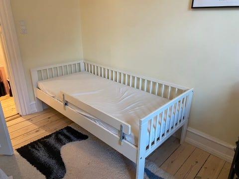 Ofte er barnets første seng en vugge, mens der først senere bliver købt en tremmeseng eller babyseng. En brugt tremmeseng kan være tilstrækkelig for en baby og et lille barn. Når du læser annonce(r), skal du være opmærksom på, om tremmesengen har en justerbar bund. En udtræksseng til børn er et godt køb, når barnet bliver større, for den kan bruges i flere år. Mange børn bevæger sig rundt i søvne, så det er godt, at sengen har kanter.