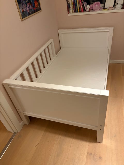 Ofte er barnets første seng en vugge, mens der først senere bliver købt en tremmeseng eller babyseng. En brugt tremmeseng kan være tilstrækkelig for en baby og et lille barn. Når du læser annonce(r), skal du være opmærksom på, om tremmesengen har en justerbar bund. En udtræksseng til børn er et godt køb, når barnet bliver større, for den kan bruges i flere år. Mange børn bevæger sig rundt i søvne, så det er godt, at sengen har kanter.