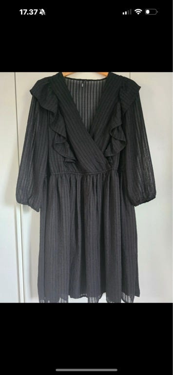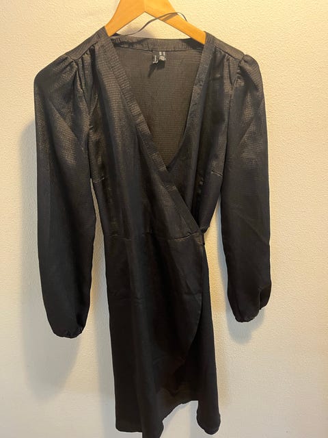 Soft Rebels smuk sort og pink kjole str. M festkjole slå-om kjole 100% viskose