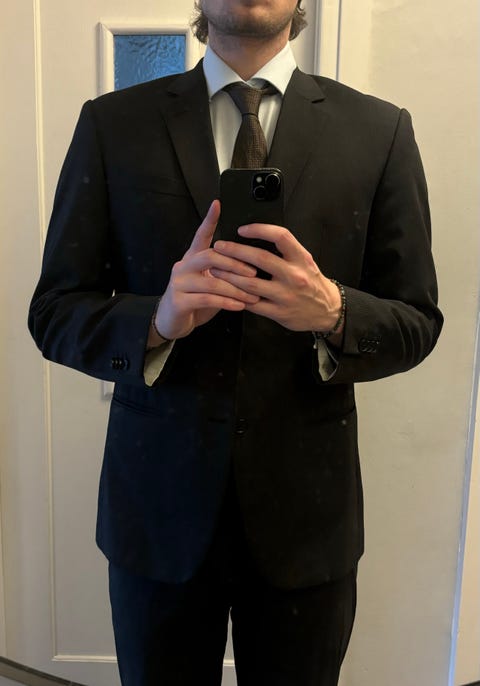 2 jakkesæt (blå og sort). tiger of sweden sorte bukser 48, SUIT blå bukser 46.