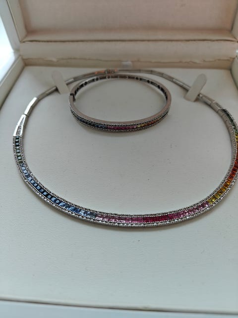 Et smykkesæt inkluderer ofte en halskæde og øreringe, og muligvis også et armbånd eller en ring. Delene i et smykkesæt passer naturligvis sammen og giver dit outfit et komplet look. Tjek DBA's 1.957 annonce(r) og se, om du kan finde det perfekte smykkesæt.