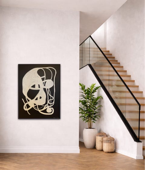 Abstrakt maleri lærred grå og sort