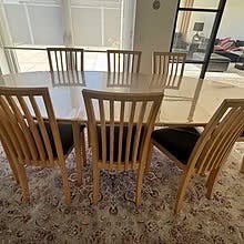 Bord med 2 tillægsplader og 6 stole