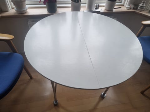 Rundt spisebord med ekstra plade