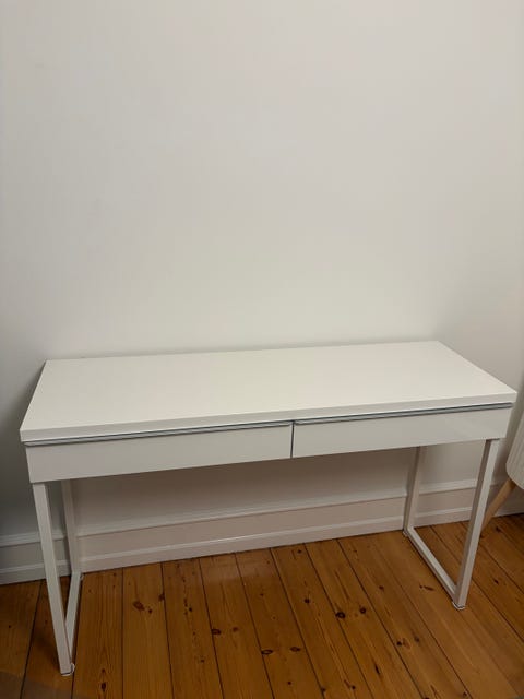 Find et brugt skrivebord til en lavere pris. På DBA er der 3.508 annonce(r), der sælger skriveborde. ## Et lille skrivebord kan gøre stor glæde Et skrivebord, der er unødvendigt for en anden, kan være det helt rigtige til dine behov. Især et skrivebord i massivt træ eller et elektrisk skrivebord kan være et dyrt køb, og du kan finde et velegnet produkt væsentligt billigere brugt. Et godt skrivebord har en velegnet højde for brugeren eller kan justeres. Når du gennemser annonce(r)ne, bør du tjekke bordets dimensioner og sammenligne dem med den bedste arbejdshøjde for dig.