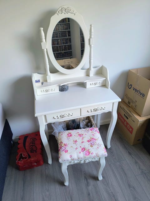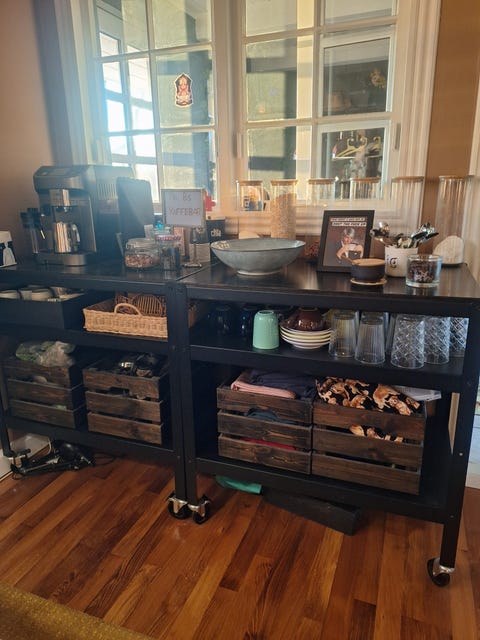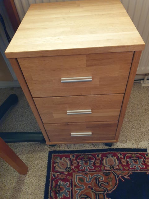 Bord med skuffe på hjul